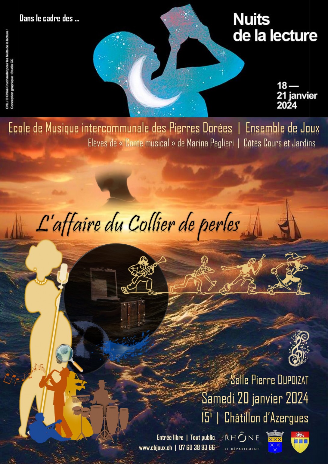 Conte musical, comédie dramatique créée et interprétée par un jeune ensemble vocal et instrumental de l'école de Musique intercommunale des Pierres Dorées, usant de leur instrument comme de percussions et façonnant les bruitages réalisés avec la MAO (Musique assistée par ordinateur).