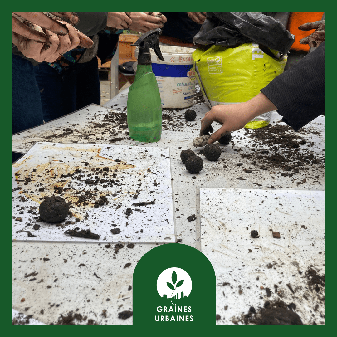 Initiation aux différentes formes de nature en ville possible, animation d'un débat mouvant sur le sujet de la présence de la nature en ville, fabrication de bombes à graines. Les participants repartent avec leurs bombes à graines et une fiche technique résumée de l'atelier.