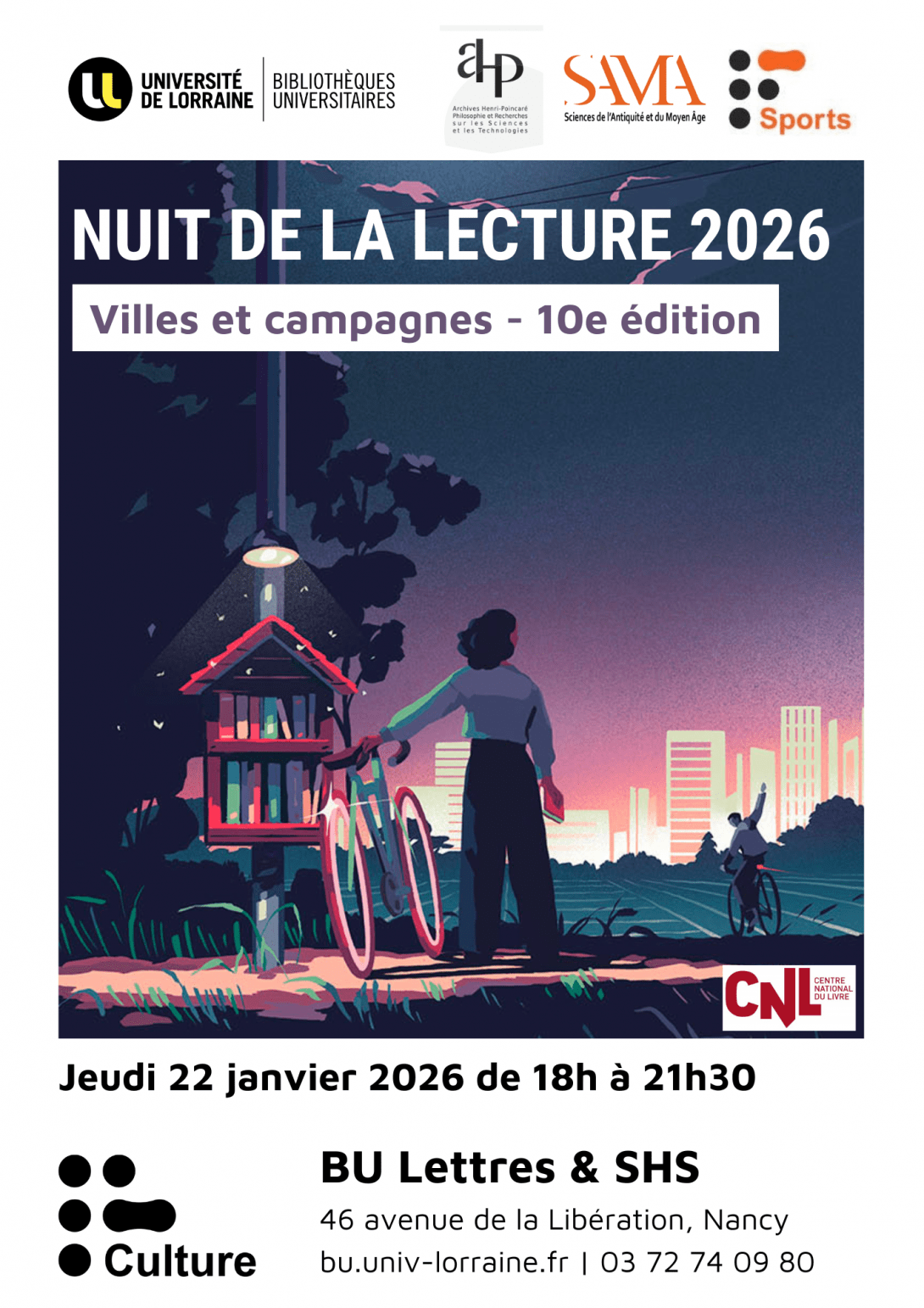Cette année, la Bibliothèque universitaire de Lettres & SHS propose un programme riche mettant en lumière ses différents partenaires. Au programme, musique, danse, lectures, play-conférence et théâtre sur le thème « Villes et campagnes ». Cette thématique viendra nourrir notre imaginaire littéraire et artistique et questionnera notre rapport à la terre et à la nature.