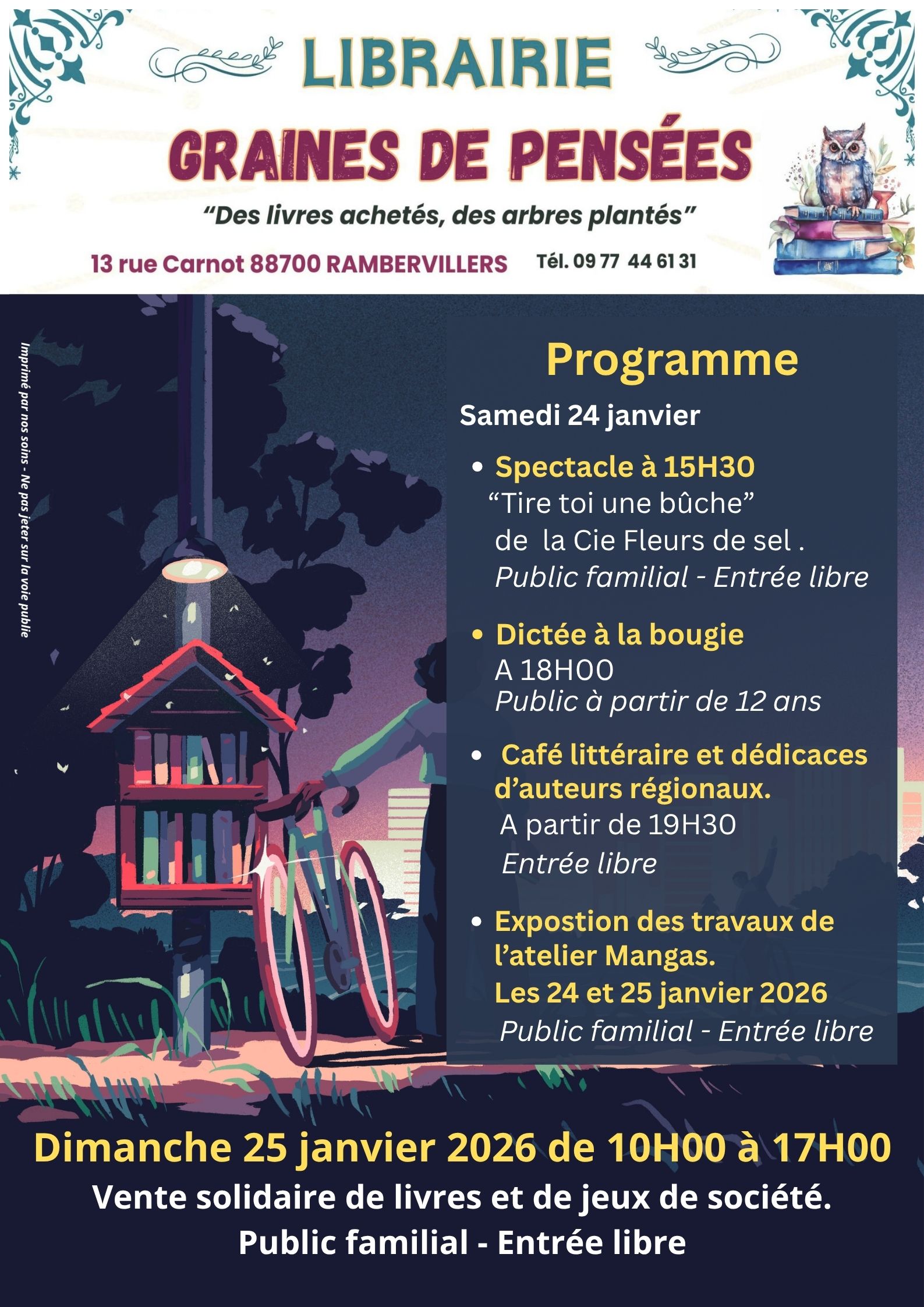 Animations : spectacle - atelier Dictée - exposition - dédicaces - Vente de livres et de jeux de société.
